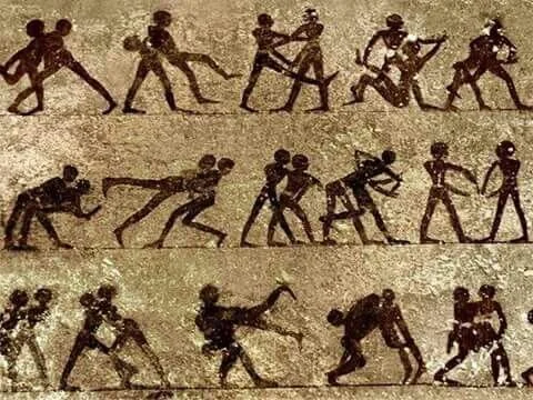 Tahtib, the physical stick fighting training, was widely used in ancient Kemet. Still shown on the temple walls in Egypt, these exercises prepared students in a form that upheld tenets such as balance, coordination, discretion and fairness. Many students who participated in Tahtib would learn for many years in their life. Like many teachings in ancient Kemet, Tahtib was not just a physical exercise, it had spiritual and metaphorical components, which taught students how to navigate life as well as combat.
